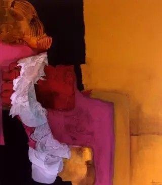 Collage abstrait de papiers sur bois