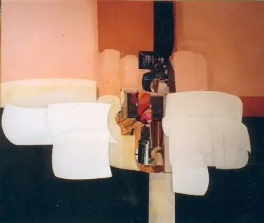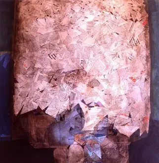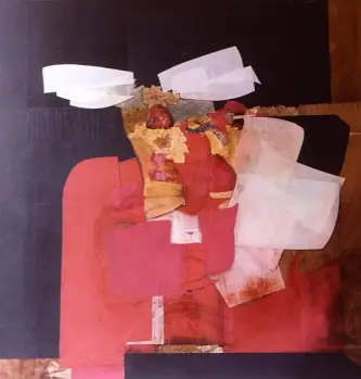 Collage abstrait de papiers s/bois