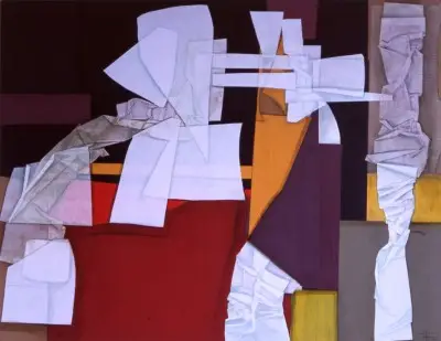 Fitzia Mendialdua, est une artiste, peintre qui entre le Mexique et Paris nous présente une œuvre moderne classique dans laquelle elle articule les tensions de forme et de couleur. Fitzia fait cohabiter dans ses collages, blancs, rouges, cafés, jaunes, verts, violets, oranges. Travaillant avec passion chaque couleur, il exprime la valeur intense des tons et des pigments. Cela se produit avec toutes les couleurs bien qu’il y en ait une qui règne au-dessus des autres : le noir, qu’elle travaille magistralement, transmettant une vigueur veloutée.
